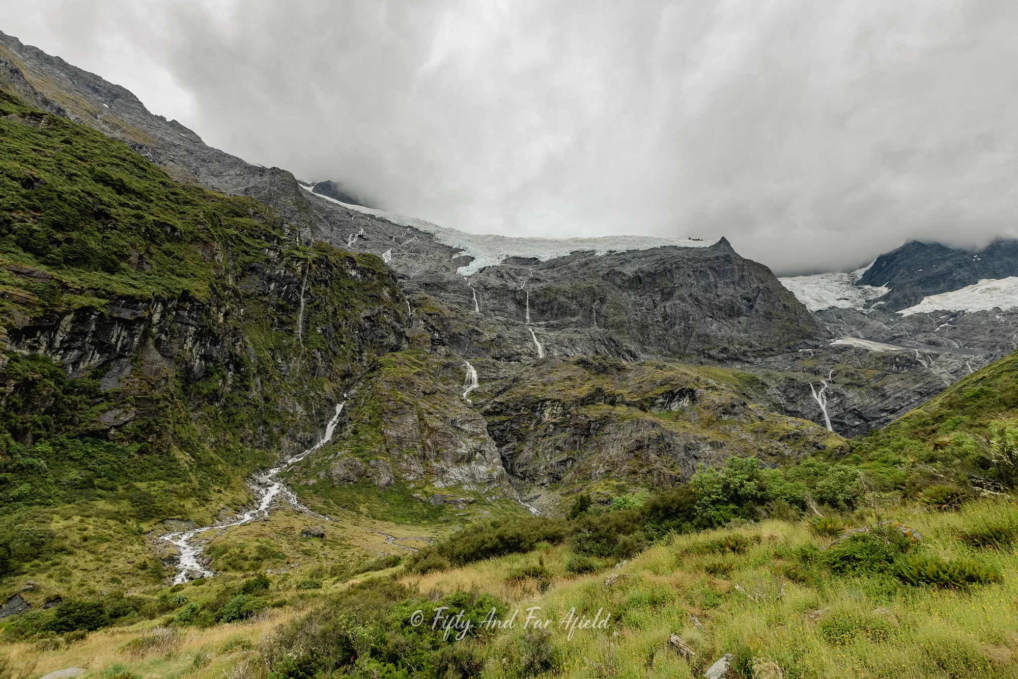 My final adventure took me deep into Mount Aspiring National Park. I was there to tackle the Rob Roy Glacier Track. The weather was a little moody with some rain. Stil, the dramatic glacier views made it worth every step. The track follows the Matukituki River. Ultimately, it leads to stunning viewpoints of the Rob Roy Glacier, a hanging glacier with waterfalls cascading down its ice walls.