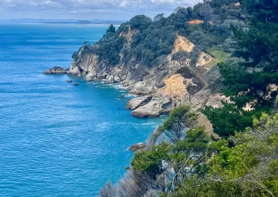 The track winds through lush native bush and feels wonderfully remote. Every so often, it opens up to cliff-top views of the ocean—those wide, endless blues that take your breath away.
